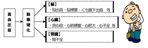 高血圧症は特に自覚症状はありませんが、脳卒中や心筋梗塞などの主な原因になっているため、正常範囲内にコントロールしていくことが大切です。