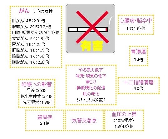 たばこと病気 ~吸う人は吸わない人より病気になりやすい~